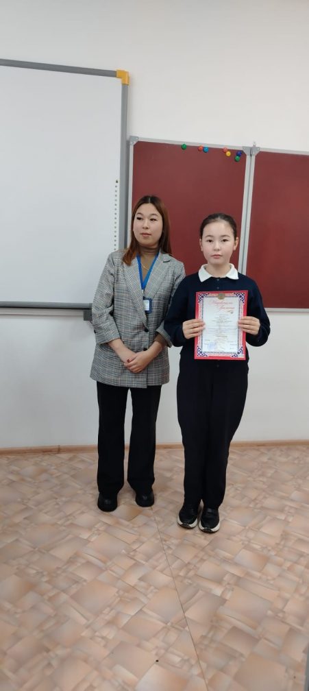 Мектебімізде дарынды шәкірттеріміз көп болсын! Орын алып келген оқушыларымызға алда талай байқауларға қатысып жүлделі орындар алып мектептің, ата-ананың, ұстаздардың мақтанышы бола беріңдер деп тілейміз! Осындай шәкірттер дайындап жүрген қазақ тілі мен әдебиеті пәні мұғалімі Мунира Күмісайдың да еңбегі еселеніп, әрқашан шәкірттерінің биік белестерді бағындыра беруіне тілекшіміз!